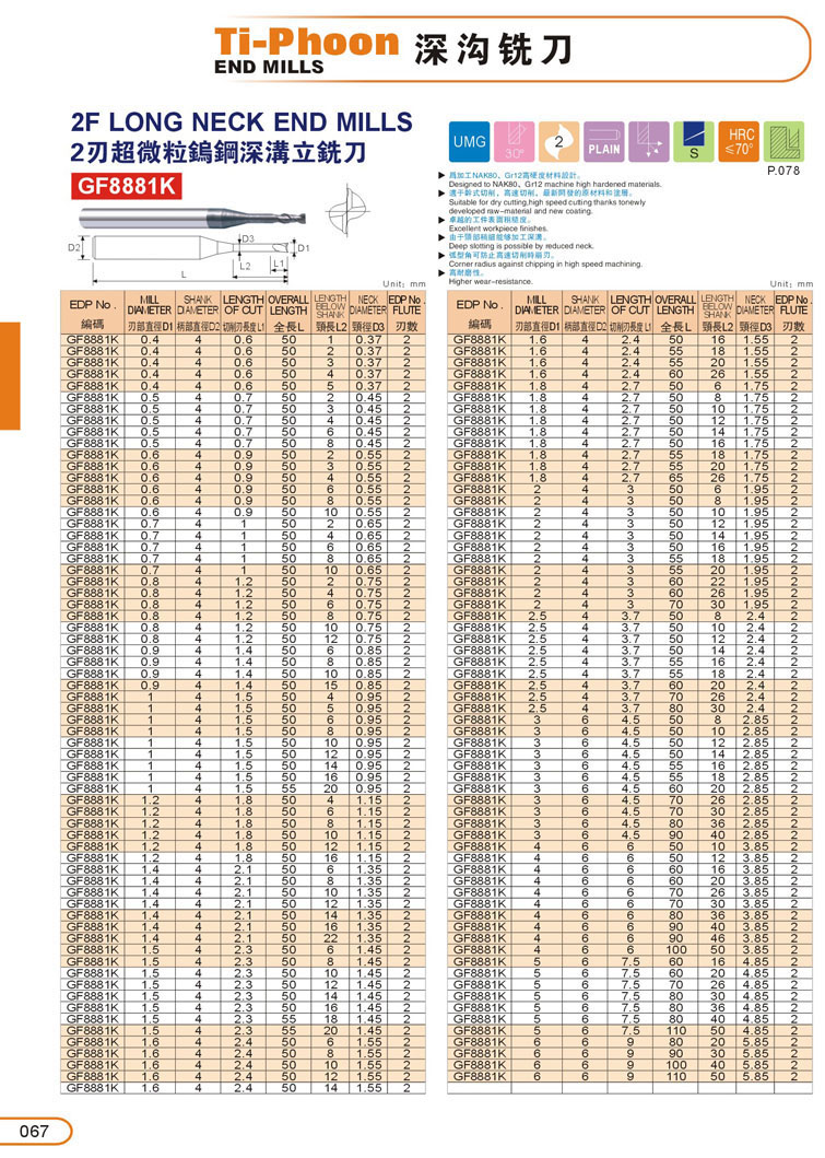 2. 2刃加長超微粒鎢鋼立銑刀058