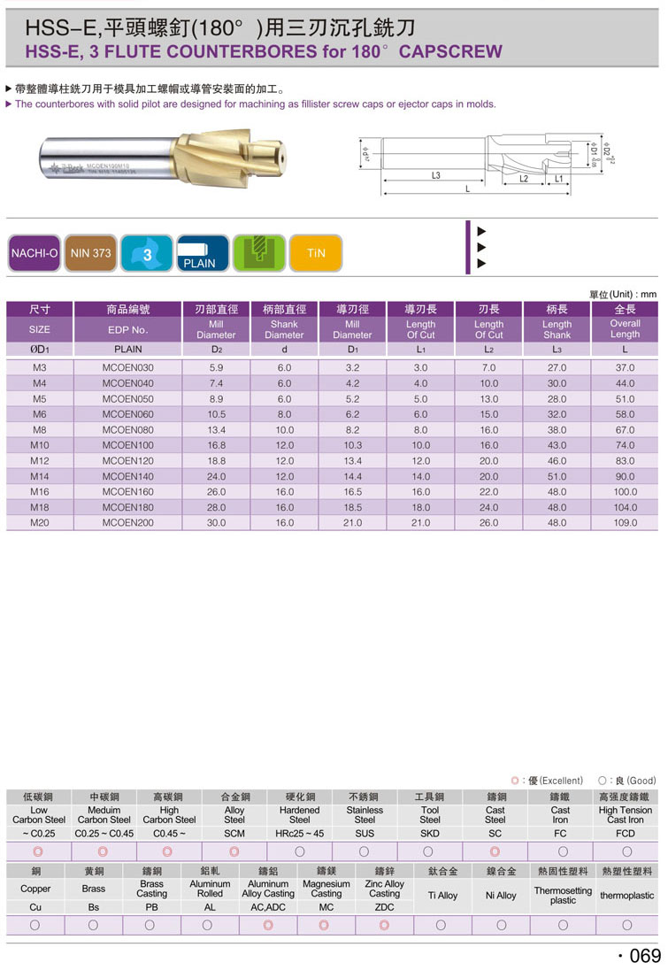 直柄公制沉頭銑刀069