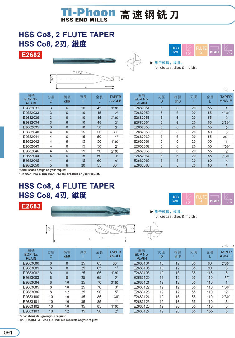12. 4刃斜度白鋼立銑刀091-2
