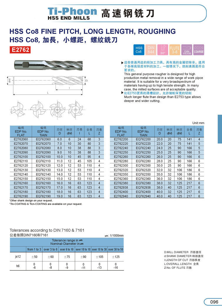 加長(zhǎng)細(xì)齒型粗銑刀096