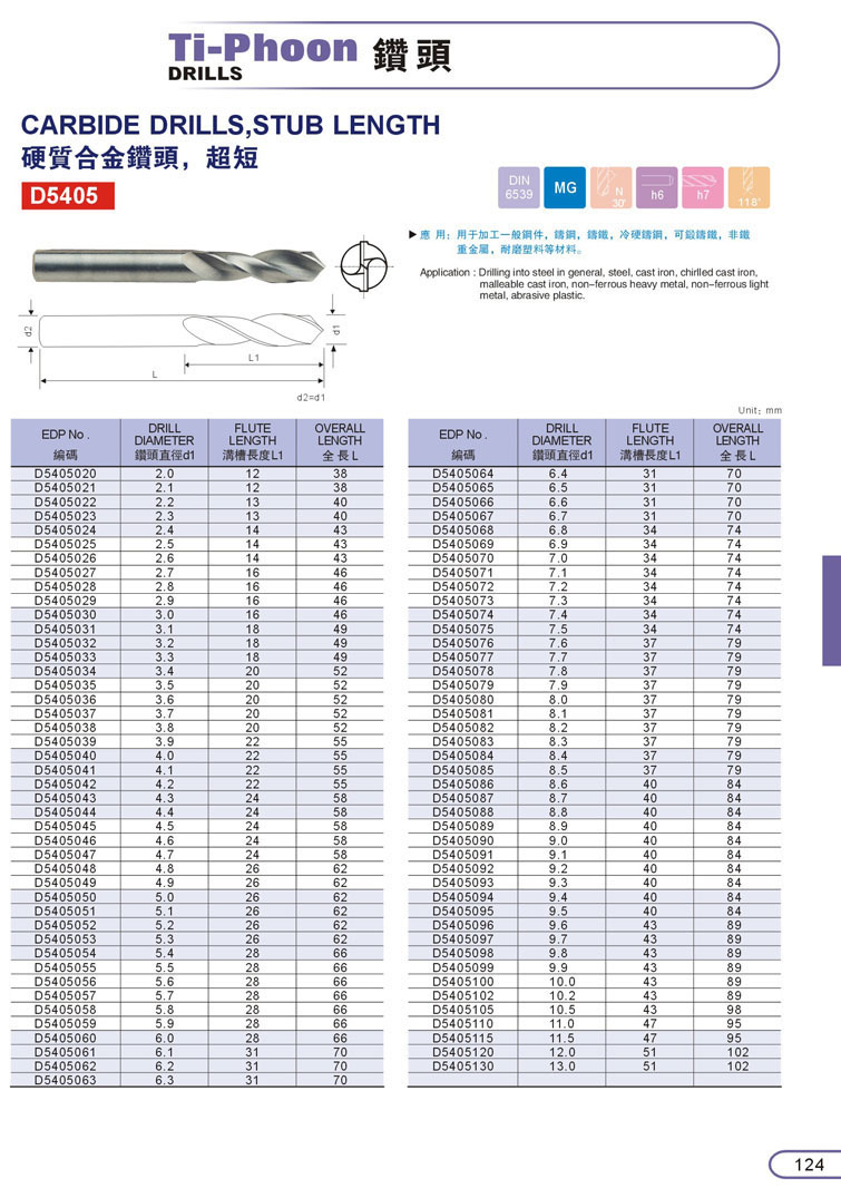 9. CARBIDE鎢鋼鑽頭短刃124