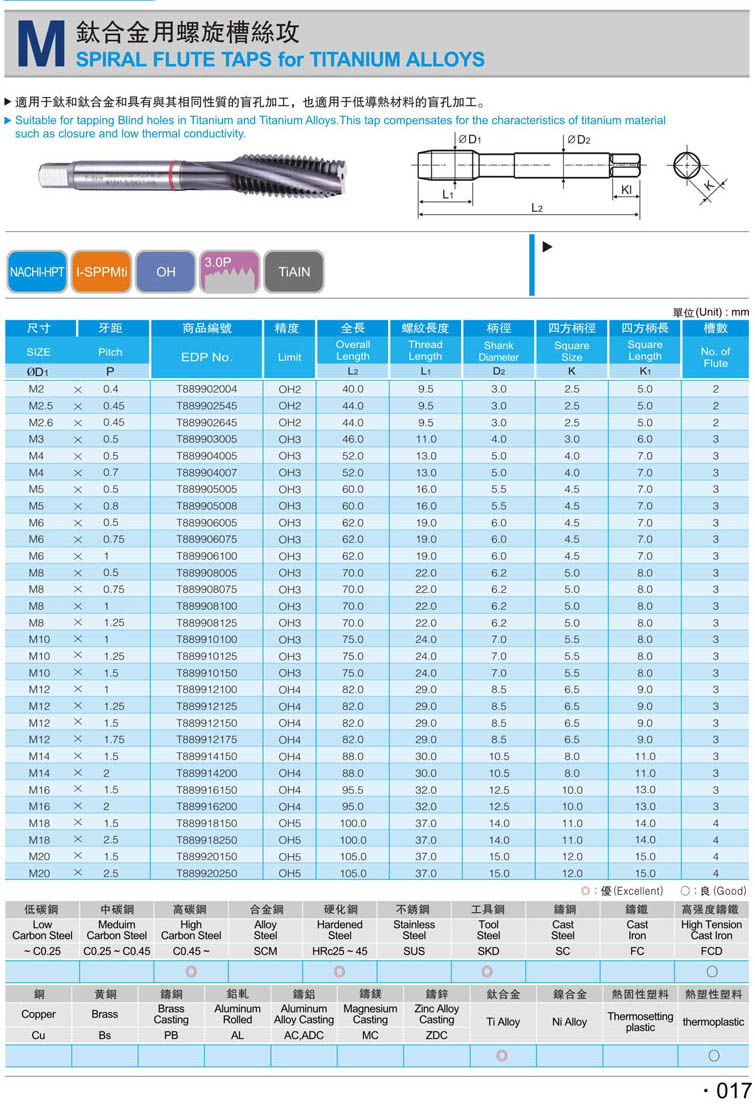 9. 公制螺旋鈦合金絲攻017