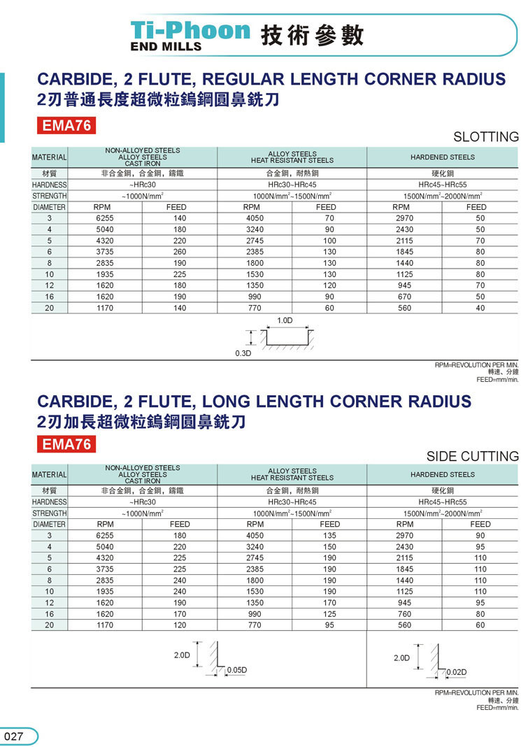 7. 2刃超微粒圓鼻鎢鋼立銑刀007