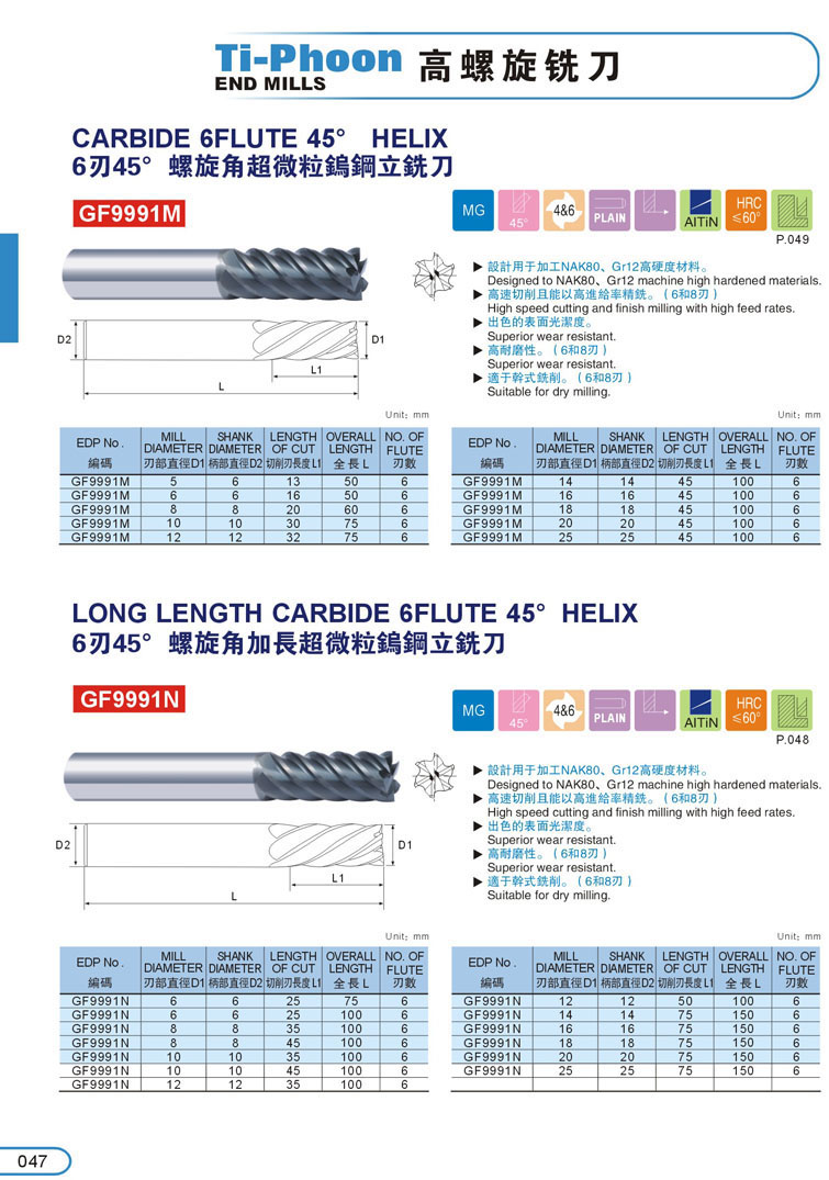 6刃超微粒鎢鋼立銑刀047-1